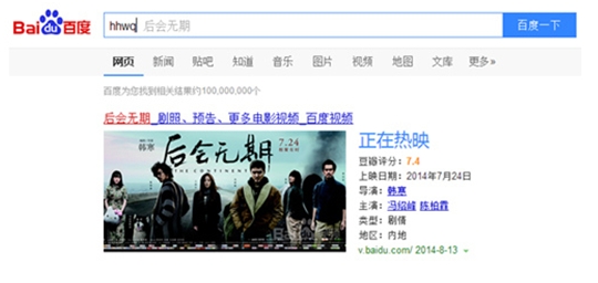 網(wǎng)友如想搜索"爸爸去哪兒",只需在搜索框中輸入"爸爸",百度便會(huì)預(yù)估個(gè)性化搜索需求,以灰色字體"猜"出網(wǎng)友想要的搜索結(jié)果,即時(shí)顯現(xiàn)內(nèi)容。即便網(wǎng)友的輸入很模糊,只有幾個(gè)字符"hhwq",智能預(yù)測(cè)也會(huì)快速轉(zhuǎn)化成關(guān)鍵詞"后會(huì)無(wú)期",進(jìn)行頁(yè)面展現(xiàn),真正做到"先知"。