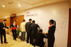 企業(yè)家們在簽到板上紛紛留名紀念