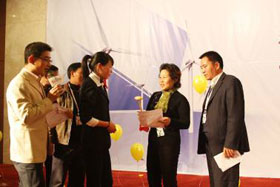 晟皞經(jīng)理為獲獎的企業(yè)家朋友們頒發(fā)獎品,企業(yè)家朋友們樂開懷