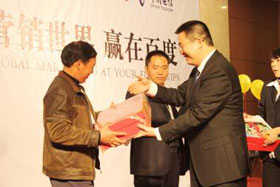2008年11月22日,陽光絢美,鮮花競放,在這暖暖的初冬季節(jié)里,營銷世界?贏在百度——2008企業(yè)營銷峰會在鹽城市瀛州賓館拉開了帷幕。此次會議規(guī)??涨笆⒋?,400多名企業(yè)家朋友齊聚一堂,我們還有幸邀請了鹽都?亭湖分局局長王林釗及26個鄉(xiāng)鎮(zhèn)的電信支局長擔任會議嘉賓,金牌電臺主持人楊帆先生擔任會議主持。會議開場,主持人帶領(lǐng)大家做“自我營銷”互動小游戲,娛樂之余直入會議主題。為了感謝各位企業(yè)家朋友們的光臨,本次會議特設(shè)抽獎環(huán)節(jié),第一輪抽獎環(huán)節(jié)后,企業(yè)家朋友們個個激情高漲。百度渠道部經(jīng)理晟皞先生粉墨登場,為我們帶來了精彩的主題演講。