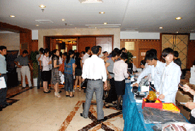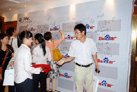 2010年9月19日鹽城瀛洲賓館,歡慶的樂曲喜悅而嘹亮,“緣”月中秋-2010百度中秋客戶答謝會(huì)的宣傳橫幅高高懸掛在酒店門庭。下午14:00思科的員工分列在酒店大廳歡迎前來參加會(huì)議的嘉賓。在引導(dǎo)員的帶領(lǐng)下,嘉賓們陸續(xù)來到簽到處簽到。