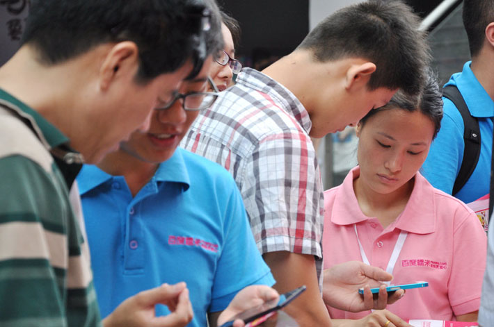 百度糯米優(yōu)惠的團(tuán)購(gòu)價(jià)格、優(yōu)質(zhì)的商家吸引了參會(huì)者駐足觀看,拿起了手機(jī)趕快到百度糯米上團(tuán)購(gòu),小姐妹們今天的午飯有著落嘍!