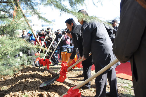 今天我們最親愛的網(wǎng)友們?yōu)榱吮磉_(dá)他們對(duì)百度的祝福,不遠(yuǎn)千里送來了代表神州大地五岳之土和長江、黃河之水。山東網(wǎng)友前往泰山取土,送來東岳之土;陜西網(wǎng)友前往華山取土,送來西岳之土;湖南網(wǎng)友前往衡山取土,送來南岳之土;山西網(wǎng)友前往橫山取土,取來北岳之土;河南網(wǎng)友前往嵩山取土,取來南岳之土;網(wǎng)友前往南京長江大橋,送來長江之水;山西網(wǎng)友前往黃河虎口瀑布取來黃河之水。下面讓我們掌聲有請(qǐng)北京市委常委、海淀區(qū)位書記趙鳳桐先生;山西省省委常委、統(tǒng)戰(zhàn)部部長李政文先生;山西省政協(xié)副主席衛(wèi)小春先生;我們的董事長兼首席運(yùn)營官、執(zhí)行官李彥宏先生;首席財(cái)務(wù)官杰尼;技術(shù)首席執(zhí)行官李一男;副總裁任旭陽一起前往植樹區(qū)進(jìn)行植樹環(huán)節(jié)。有請(qǐng)。