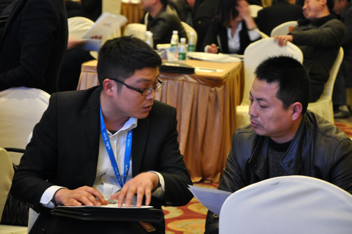 工作人員為企業(yè)家們詳細介紹百度移動搜索推廣